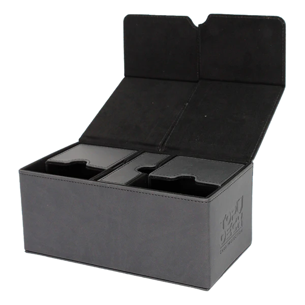 Protege y organiza tus cartas con este práctico Portamazos Premium para Cartas, perfecto para los coleccionistas y jugadores más exigentes. Este Portamazos Premium tiene dos compartimientos separados para almacenar hasta 200 cartas con Protectores, además de un cómodo compartimiento para guardar dados y contadores. Fabricado con una cubierta de eco-cuero y un interior de tela, tus cartas estarán más protegidas que nunca y tu baraja se vera realmente elegante.
